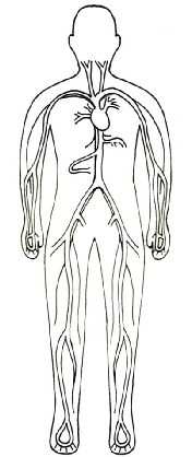 The blood that flows from the heart through the arteries carries oxygen to the different cells in the body. The blood that flows back to the heart through the veins helps to carry toxins and wastes to be cleaned out of the body.