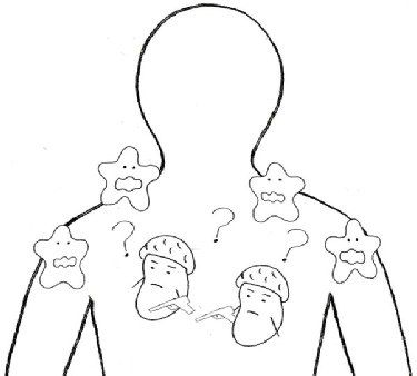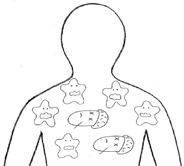 For example, your skin is a protective layer covering your body so nothing bad can get inside. If something bad gets inside your body (through your skin, mouth, or some other opening), the white blood cells work to attack it so it cannot harm you. Your lymph nodes help by holding some of the germs until your white blood cells can fight them all. There are many other things that work together for fighting off disease and illness, but this is a basic idea of how your immune system works.